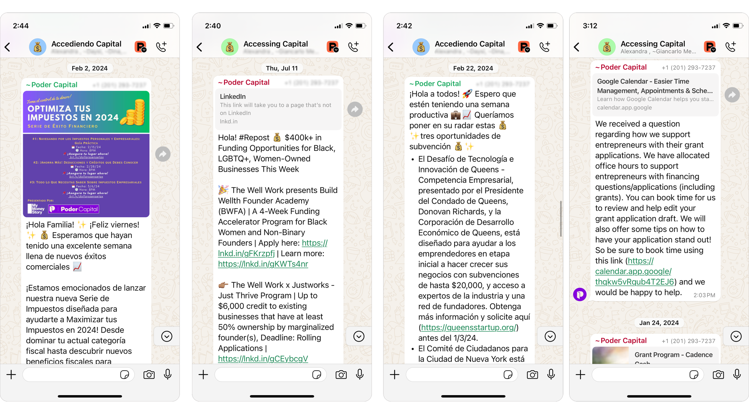 They could also opt in to a Whats App group, that brings Latinx small business owners together and shares resources with them.