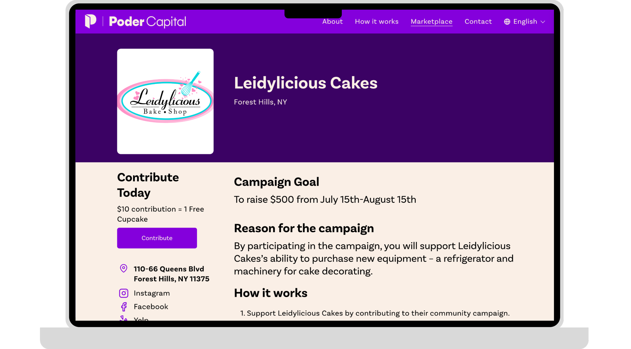 We decided to start small and run a mini-pilot: one Latinx small business owner asking her community to financially support her business. Through a community partner, we were introduced to Leidy. Leidy has been making desserts for over 22 years. She opened Leidylicious Bake Shop, a retail bakery, in May of 2023. She quickly had so many orders that she ran out of fridge space. She needed to buy another fridge in order to take on more orders. She went to a few banks but was told she wasn’t eligible for a loan. We met Leidy in August of 2023 and didn’t know what to do next. She wanted to grow her business but she needed capital.